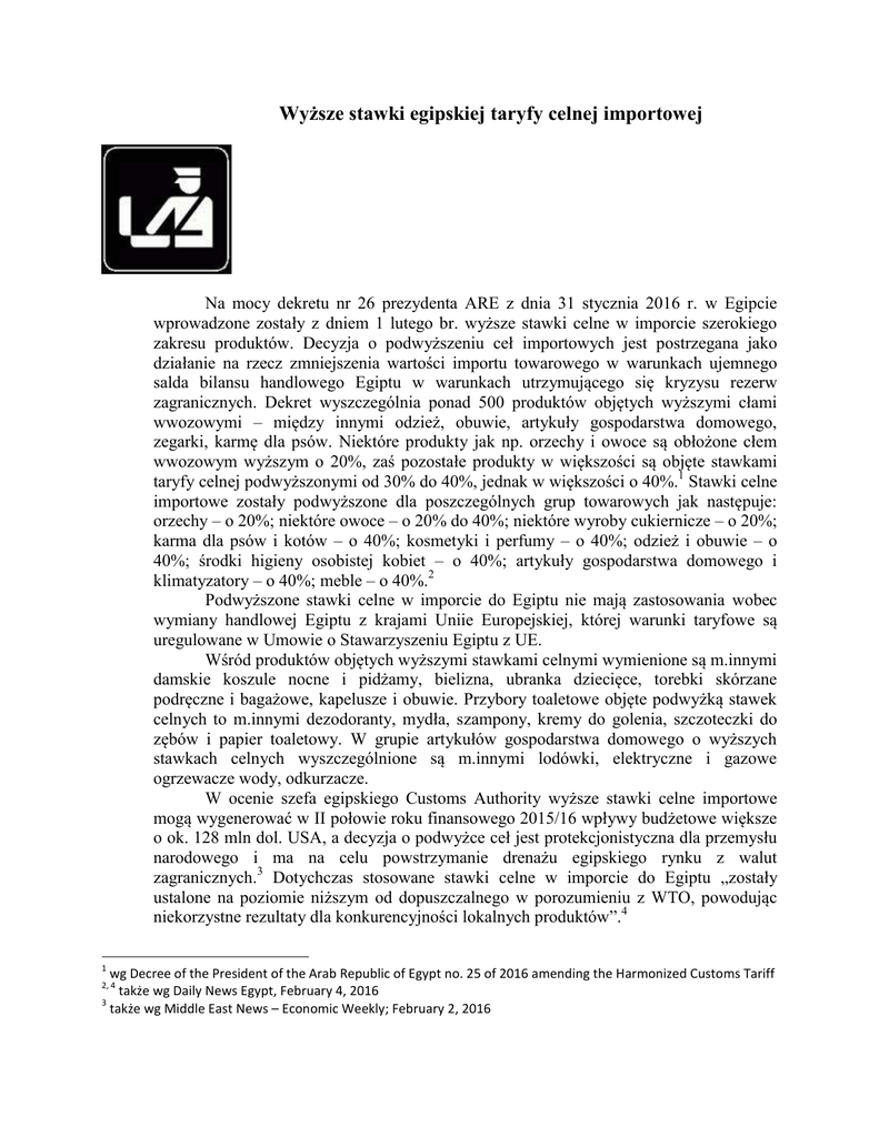 PPE_PL_Egipt podwyzka stawek taryfy celnej importowej stronka