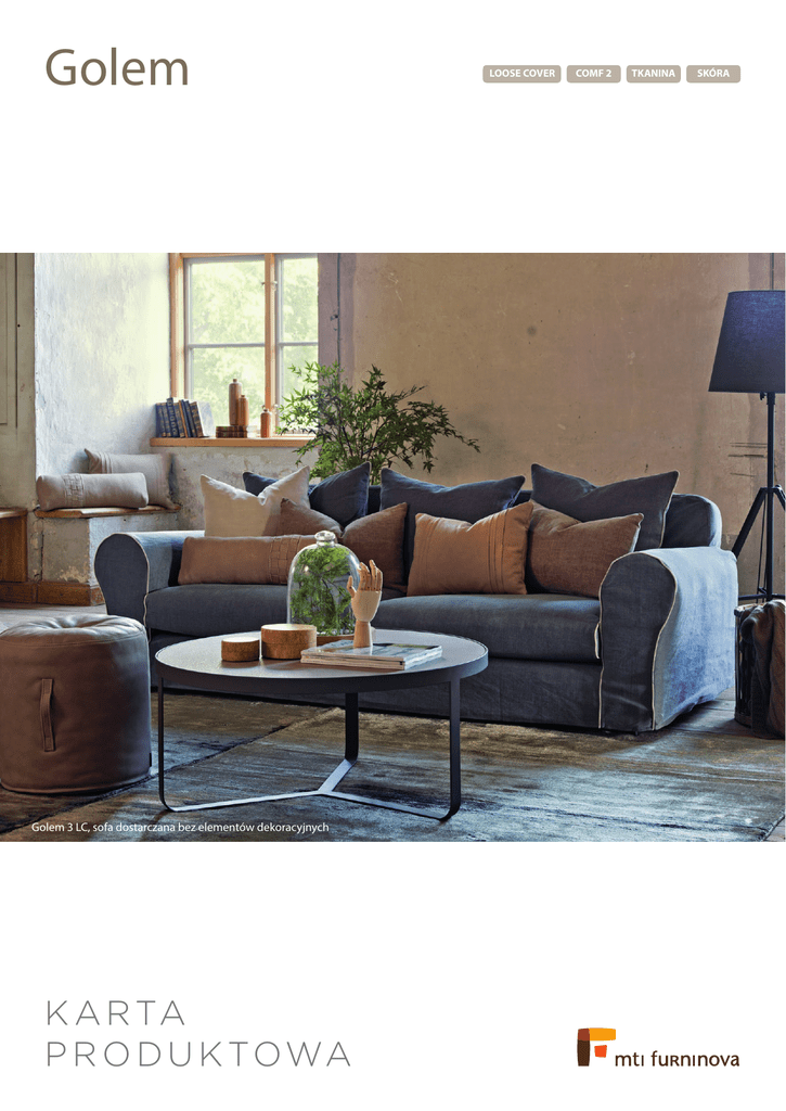 Golem Golem 3 LC, sofa dostarczana bez elementów dekoracyjnych K A R TA P R O D U K TO WA LOOSE COVER COMF 2 TKANINA SKÓRA Golem Wymiary* Szerokość • Głębokość • Wysokość w cm 3 2,5 230x102x80 200x102x80 180 150 1 118x102x80 Głębokość siedziska 57 • Wysokość siedziska 41 Golem Deco 55x35x12 Pufa 64x64x41 68 * Wymiary mogą się różnić +/- 3%, w zależności od wyboru tapicerki i konfiguracji. Piktogramy nie odzwierciedlają proporcji i kształtu mebla. Comfort C2 C2 Poduszka siedziska Wkład poduszki siedziska składa się z wysokoelastycznej pianki (HR) z topem pierzowym. top pierzowy 13 cm pianki wysokoelastycznej Poduszka dekoracyjna Kącik kanapowy w zestawie kilku sof to marzenie i spełnienie jednocześnie. Golem ma piękną, klasyczną linię w wersji potrójnego, podwójnego i pojedynczego siedziska. Prostokątna poduszka Golem Deco jest nowoczesnym i inspirującym dodatkiem do klasycznego stylu. Perfekcyjność wykonania i wysoką jakość tkaniny obiciowej podkreśla kontrastowa, wyeksponowana kedra znacząca szwy zewnętrzne. Golema docenią wszyscy: - rodzina z dziećmi - za komfort i zdejmowane pokrowce, - para - za wygodę i przytulny klimat, - singiel - za luksus i styl. Prestiż i wdzięk klasyki - to zaleta, której nie da się przecenić. 70% pierze 30% pianka szarpana Poduszki dekoracyjne w tkaninie są odwracalne. Zdejmowane pokrowce. W tkaninie dostępne tylko wersje z kedrą lub ze szwem francuskim F-SPECIAL MTI-Furninova Polska Sp. z o.o., ul. Bolesława Chrobrego 3, 11-400 Kętrzyn tel. 89 751 32 65, fax 89 751 51 57, e-mail: [email protected] Model dostępny z kedrą w tkaninie.