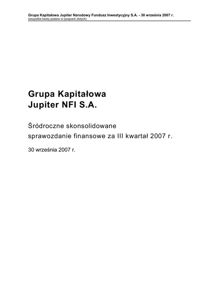 Grupa Kapitałowa Jupiter Narodowy Fundusz Inwestycyjny S.A. – 30 września 2007 r.