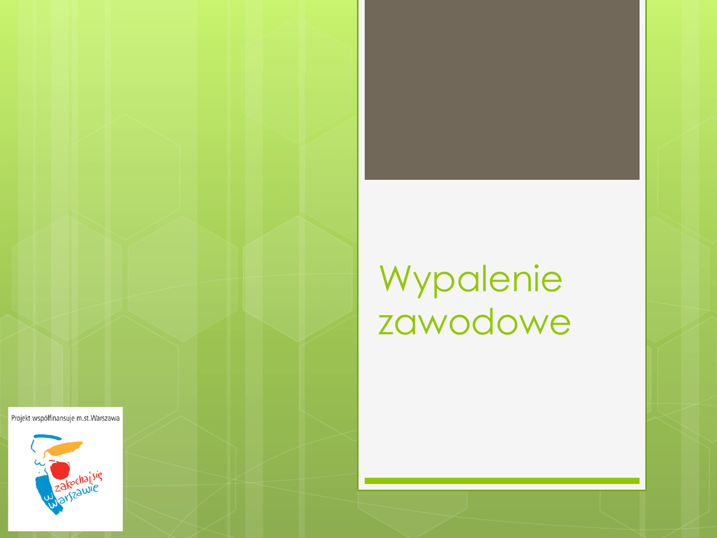 Wypalenie zawodowe Jak rozpoznać wczesne objawy? Jak sobie z nimi radzić? Występuje, gdy pracownik przestaje odczuwać satysfakcję z wykonywanej pracy, jego rozwój zawodowy zostaje zahamowany, odczuwa przepracowanie i niezadowolenie z wykonywanego zajęcia, które wcześniej sprawiało mu przyjemność. Jest to wynik wypalania się, czyli stresu występującego na skutek przepracowania. Problem ten dotyczy najczęściej przedstawicieli zawodów wymagających intensywnych kontaktów z ludźmi. Czynniki ryzyka: 1. Zbyt liczny zespół współpracowników – trudności w budowaniu i podtrzymywaniu wspierających relacji. 2. Zbyt mały zespół pracowników – duże obciążenie pracą, zbyt mały dystans. Nieadekwatny skład zespołu – brak wpływu na dobór ludzi do zespołu pod względem pożądanych cech osobowościowych i kompetencji zawodowych. 3. Brak kontaktu i wsparcia – pomagając innym czerpiemy energię do pracy z szacunku, którym jesteśmy darzeni w zespole, z uznania dla naszej pracy, lojalności i życzliwości ze strony kolegów. 4. Brak informacji zwrotnej – członkowie zespołu nie przekazują sobie informacji dotyczących pracy w zespole, trudności, z którymi się borykają, pomysłów na temat możliwości usprawnienia funkcjonowania zespołu w obszarze organizacji pracy i komunikacji. 5. Zarządzanie dyrektywne – wszelkie niekorzystne zjawiska dotyczące kierowania zespołem przekładają się na poczucie jakości życia i sprawność zawodową. Rozwój wypalenia zawodowego nie zależy tylko od charakteru stresu i aktualnej siły człowieka, lecz w głównej mierze od oparcia emocjonalnego i możliwości pomocy ze strony otoczenia. Wypalenie zawodowe nie pojawia się z dnia na dzień. To złożony proces, w którym dochodzi do skumulowania się wielu symptomów, informujących o pogłębiających się problemach. Dlatego właściwa i szybka autodiagnoza umożliwia podjęcie działań zaradczych i dokonanie pożądanych zmian. PODSTAWOWE WYMIARY SYNDROMU WYPALENIA ZAWODOWEGO WEDŁUG CH. MASLACH: I. stadium wyczerpania emocjonalnego: nadmierne zaangażowanie emocjonalne oznacza, że osoba identyfikuje się emocjonalnie z pracą, tak że sukces w pracy jest równoznaczny z sukcesem osobistym, a niepowodzenie w pracy - z osobistą porażką. W stadium tym, pojawiają się symptomy emocjonalnego wyczerpania, takie jak fizyczne zmęczenie, dolegliwości ze strony układu pokarmowego, bóle głowy, zaburzenia snu, osłabienie układu immunologicznego. II. stadium depersonalizacji: przejawia się przez fizyczne lub psychiczne dystansowanie się w stosunku do osób, które są odbiorcami usług; przekonanie, że osoba potrzebująca pomocy zasługuje na los, jaki ją spotkał i nie jest warta godnego traktowania. III. stadium obniżonego poczucia dokonań osobistych: spadek poczucia własnej kompetencji i skuteczności, poczucie braku kontroli, zorientowanie na porażkę - syndrom wyuczonej bezradności. Objawy: FIZYCZNE Dominujące poczucie zmęczenia Zaniedbywanie aktywności fizycznej Zakłócenia snu Zaburzenia łaknienia Zaburzenia seksualne (brak ochoty na seks) Nadużywanie alkoholu, leków, etc. Częste choroby bez rozpoznawalnych przyczyn EMOCJONALNE I BEHAWIORALNE Trudności w relaksowaniu się Utrzymujące się poczucie znużenia Obniżony nastrój Stała obecność negatywnych postaw i myśli Długotrwałe resentymenty lub urazy wobec innych ludzi Regularnie występujące poczucie osamotnienia lub izolacji Nawracające lęki Poczucie pustki i braku sensu Rosnąca ilość zachowań impulsywnych bez względu na konsekwencje Niekontrolowane zachowania agresywne RODZINNE I SPOŁECZNE Obniżenie zainteresowania życiem rodziny Łatwiejsze wpadanie w irytację lub złość na członków rodziny Spędzanie większej ilości czasu poza domem bez wyraźnego powodu Opór przed wspólnym wypoczynkiem lub niemożność cieszenia się nim Zwiększająca się ilość czasu spędzanego samotnie. Nadmierne oglądanie telewizji jako sposób ucieczki od problemów Nasilony stres towarzyszący dużym zmianom życiowym Obniżenie poczucia wsparcia ZWIĄZANE Z PRACĄ Utrata zapału Poczucie, iż stale brakuje na coś czasu Obawy i opór przed pójściem do pracy Rosnące poczucie niekompetencji Poczucie "marnowania" czasu Trudności w kończeniu rozpoczętych zadań Narastające niezadowolenie z pracy, brak pomysłu na dokonanie zmiany Trudności w wyrażaniu własnych opinii Utrzymująca się złość i pielęgnowanie urazy do przełożonych i współpracowników Potrzeba częstego patrzenia na zegarek Schematyczne traktowanie podwładnych Niezdolność do podejmowanie decyzji PAMIĘTAJ! Jeśli poczucie wypalenia zawodowego jest już bardzo nasilone - odczuwasz brak motywacji, wycofałeś się z życia towarzyskiego, twoja efektywność w pracy zawodowej spadła do minimum, zgłoś się na konsultację do specjalisty. Przeciwdziałając syndromowi wypalenia zawodowego: Poddaj weryfikacji swoje cele i priorytety; Postaraj się, aby Twoje cele były realistyczne tzn. aby ich realizacja zależała od Ciebie. Oceń czy wymagania, które stoją przed tobą, korespondują z twoimi celami; Przeanalizuj swoje możliwości w zakresie sprostania tym wymaganiom; Jeżeli odczuwasz nadmiar obowiązków, dokonaj ich redukcji poprzez wycofanie się z pewnych zadań; Staraj się być elastycznym, patrz na problem z różnych perspektyw. Bądź świadomy swoich braków i akceptuj własne ograniczenia. Podejmuj nowe wyzwania. Zwracaj uwagę na drobne radości codziennego życia. Twórz satysfakcjonujące relacje z innymi. Sprawdź, które obszary twoje życia - praca, rodzina, etc. generują stres i postaraj się to zmienić, rozwiązać istniejące problemy, zredukować stres; Skorzystaj z pomocy rodziny lub przyjaciół w uporaniu się ze stresem; Upewnij się czy prowadzisz zdrowy styl życia: - czy dostarczasz sobie odpowiednią ilość snu i wypoczynku; - czy twoja dieta jest właśc