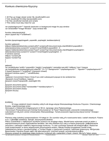 W ci±gu ostatnich trzech miesiêcy odby³a siê druga edycja Warszawskiego Konkursu Fizyczno Chemicznego