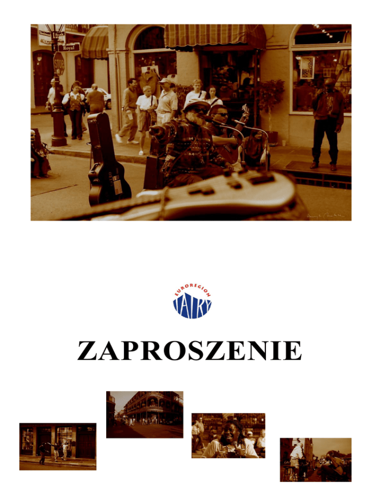 ZAPROSZENIE Związek Euroregion „Tatry” serdecznie zaprasza na otwarcie wystawy fotografii Henryka Mariana Malesy NEW ORLEANS KLIMATY ZWIANE WIATREM które odbędzie się 16 listopada 2012 r. o godz. 17.00 w Ośrodku Współpracy Polsko-Słowackiej w Nowym Targu, ul. Sobieskiego 2 Henryk Marian Malesa urodził się 9 stycznia 1950 r. w Szczecinie. Absolwent Wydziału Prawa i Administracji Uniwersytetu Warszawskiego. Pracuje jako fotograf i menadżer. Jest członkiem Związku Polskich Artystów Fotografików i Rady Fundacji „Centrum Fotografii“. Współpracuje z „Jazz Forum” i Galerią B&B w Bielsku Białej. W swojej karierze artystycznej zrealizował już wiele wystaw. Moment’s notice to cykl fotografii znanych muzyków jazzowych, które próbują utrwalić muzykę i jej wykonawców, ich emocje i atmosferę miejsca. Wystawa pt. W stronę człowieka prezentuje fotografie człowieka w jego naturalnym otoczeniu z kontrapunktem sytuacyjnym lub portretowym. Z kolei 4 pory roku to wystawa fotografii obrazujących zmieniające się w ciągu roku pejzaże. Fotografie Henryka Malesy prezentowane były w galeriach: BWA i B&B w Bielsku Białej, Biblioteki Śląskiej w Katowicach, ZPAP Sukiennice w Krakowie, Umelcov Spiša w Spiskiej Nowej Vsi, Galerii TNP w Płocku, Sheraton w Warszawie, Centrum Kultury i Sztuki w Kaliszu, Klubu Fleda w Brnie, Krzywy Domek w Sopocie, Maneż w Petersburgu, American Corner w Gdańsku, Waga w Poznaniu. Henryk Malesa za pomocą fotografii utrwala swoje największe pasje: jazz i człowieka. Taka jest też wystawa pt. Nowy Orlean, klimaty zwiane wiatrem. Zbiór 45 zdjęć w sepii wykonanych w październiku 2001 r. jest nostalgiczną wędrówką po ulicach miasta, klubach bluesowych i jazzowych Nowego Orleanu jeszcze sprzed huraganu Katrina w 2005 r. To próba odtworzenia klimatu miasta, który bezpowrotnie przeminął, zwiany wiatrem.