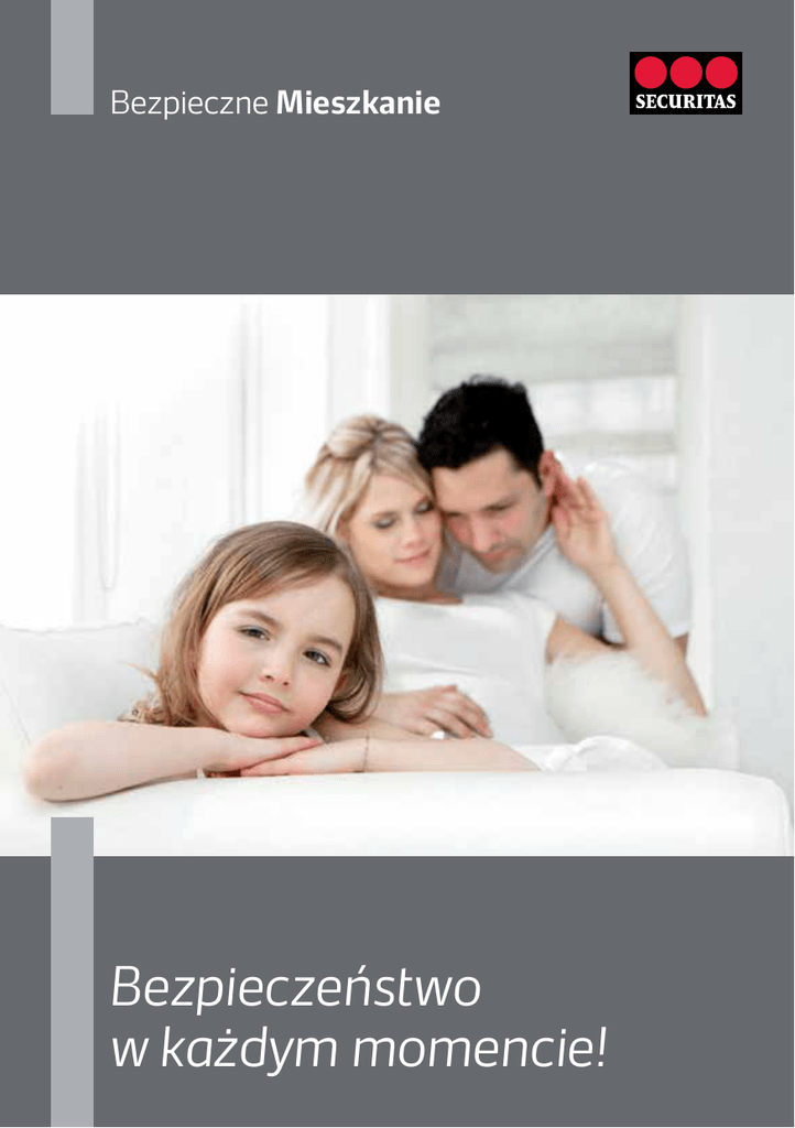Bezpieczne Mieszkanie Bezpieczeństwo w każdym momencie! Nowoczesna technologia bezprzewodowa oraz doświadczenie światowego lidera na rynku usług ochrony, gwarantuje niezawodność oraz poczucie bezpieczeństwa na najwyższym poziomie. Zalety Pakietów Securitas Profesjonalna ochrona Twojej rodziny i majątku Kontrola stanu zużycia baterii w poszczególnych elementach systemu Profesjonalna ochrona Twojego biznesu System poinformuje użytkownika o zaniku zasilania sieci W pełni funkcjonalny system alarmowy Centrum Monitorowania Securitas czuwa 24h na dobę 365 dni w roku Możliwość samodzielnego montażu System jest nadzorowany przez Centrum Monitoringu Obsługa systemu poprzez SMS Zdalna konfiguracja, serwis i konserwacja systemu alarmowego Rozszerzona, 36-miesięczna gwarancja na system alarmowy Konkurencyjna cena systemu Kontrola systemu poprzez urządzenia mobilne typu smartphone System alarmowy jest dostarczany przesyłką kurierską System całkowicie bezprzewodowy Telefoniczna informacja o wykrytych zdarzeniach Stała, bezprzewodowa łączność systemu z Centrum Monitorowania Securitas Prosty i intuicyjny montaż systemu Czujniki ruchu tolerujące obecność małych zwierząt (do 18 kg) Bezpieczeństwo w każdym momencie! Pakiet Bezpieczne Mieszkanie to system przeznaczony dla osób dbających o bezpieczeństwo swojego mienia przy jednoczesnej optymalizacji kosztów. Samodzielny, bezinwazyjny montaż oraz możliwość rozbudowy i dostęp on-line dają pełną kontrolę nad chronioną nieruchomością. Pakiet Bezpieczne Mieszkanie przeznaczony jest dla: domów jednorodzinnych w układzie bliźniaczym i wolnostojących; mieszkań i apartamentów w blokach wielorodzinnych; komercyjnych powierzchni biurowych i usługowych. Funkcje dostępne w pakiecie Bezpieczne Mieszkanie System uruchomi alarm, gdy czujnik pożaru wykryje dym (opcja dostępna z czujnikiem dymu) Uzbrojony system uruchomi alarm po wykryciu otwartych drzwi System uruchomi alarm, gdy czujnik wykryje zalanie System wyposażony w syrenę dźwiękową Uzbrojony system uruchomi alarm w momencie wykrycia ruchu w pomieszczeniach System obsługiwany za pomocą pilota zdalnego sterowania W podstawowej konfiguracji pakiet Bezpieczne Mieszkanie zawiera: opcjonalnie: Centrala alarmowa Czujka ruchu (detektor) Pilot dwukierunkowy Czujka magnetyczna (kontaktron) Czujka zalania Czujka dymu Jak to działa? Wykrycie zagrożenia np. czujka dymu wykrywa pożar System wysyła sygnał do Centrum Monitorowania Centrum Monitorowania kontaktuje się z obiektem (poprzez telefon stacjonarny) lub z pierwszą osobą upoważnioną z listy kontaktowej. Jeśli nie udaje się skontaktować z obiektem lub osobą upoważnioną, Centrum Monitorowania telefonuje w kolejności do wszystkich osób z listy. właściciele mieszkania sąsiad ochrona osiedla Patrol Securitas (opcja w zależności od wykupionego pakietu) Jeśli sygnał pożaru jest potwierdzony powiadamiana jest Straż Pożarna