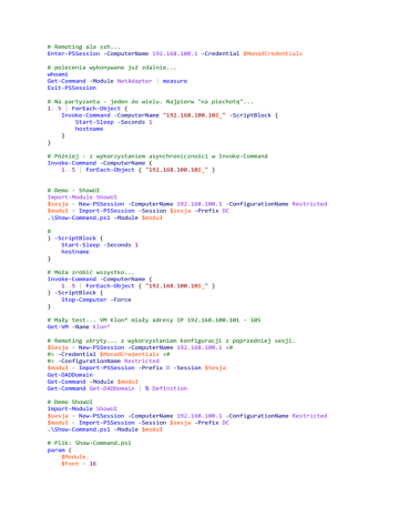 # Później - z wykorzystaniem asynchroniczności w Invoke-Command