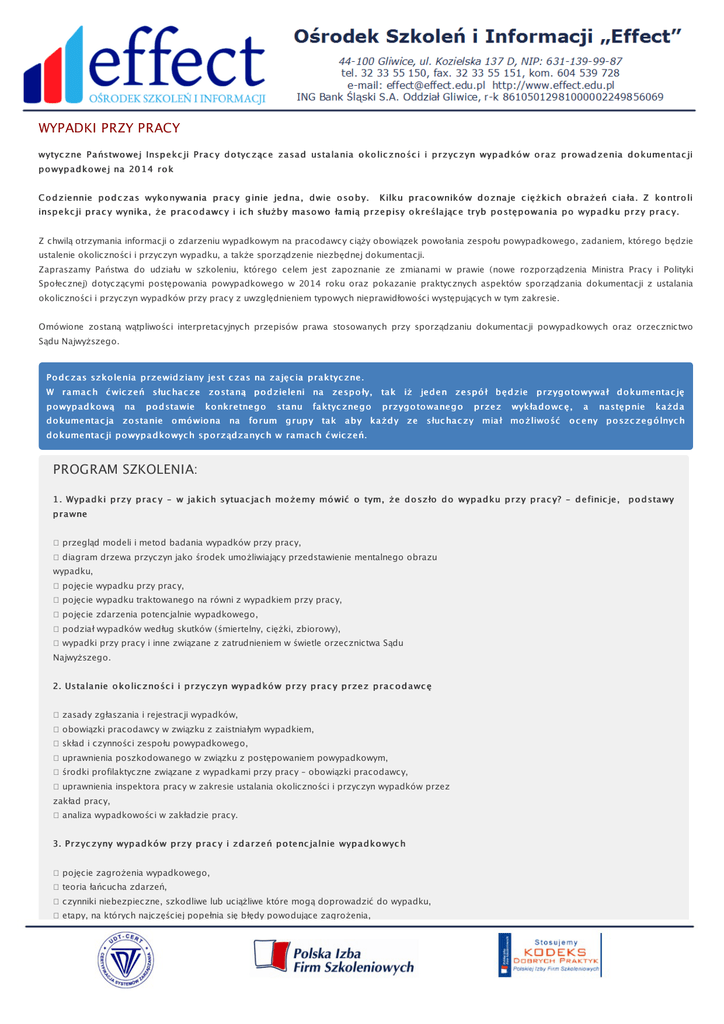 WYPADKI PRZY PRACY : Effect – Ośrodek Szkoleń i Informacji