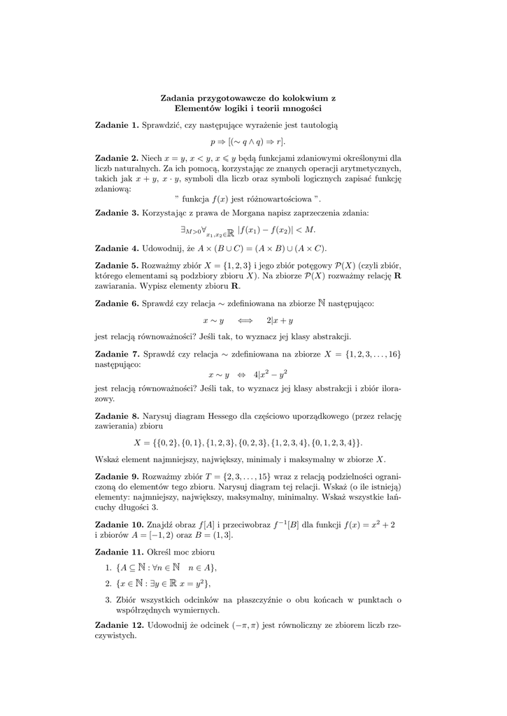 Zadania przygotowawcze do kolokwium z Elementów - e-WMP