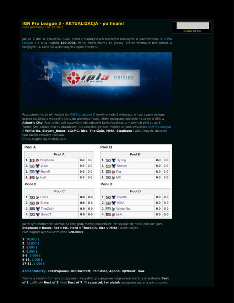IGN Pro League 3 - AKTUALIZACJA - po finale!