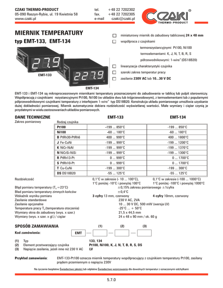 karta katalogowa (plik PDF) - CZAKI Thermo