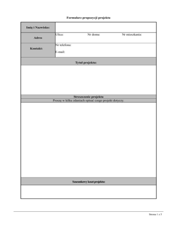 Formularz propozycji projektu Imię i Nazwisko: Adres Ulica: Nr domu