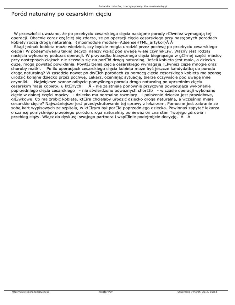 operacji. Obecnie coraz częściej się zdarza, ze po operacji cięcia cesarskiego przy następnych porodach