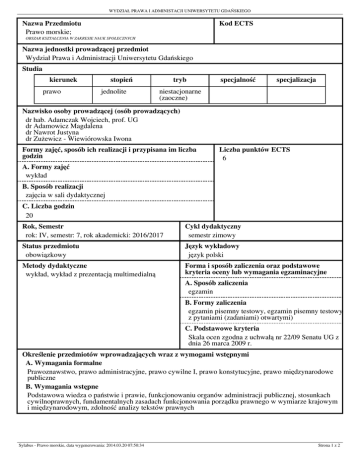 treść sylabusa - Wydział Prawa i Administracji Uniwersytetu