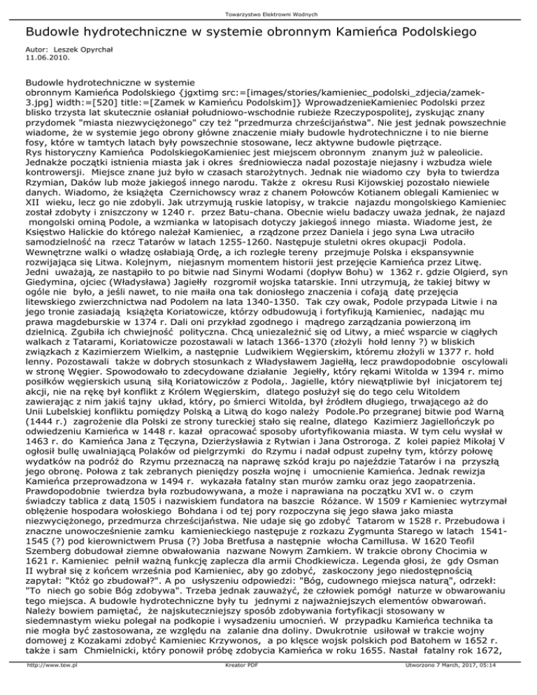 obronnym Kamieńca Podolskiego {jgxtimg src:=[images/stories/kamieniec_podolski_zdjecia/zamek3.jpg] width:=[520] title:=[Zamek w Kamieńcu Podolskim]} WprowadzenieKamieniec Podolski przez