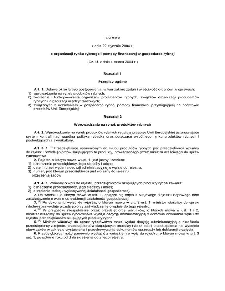 USTAWA z dnia 22 stycznia 2004 r. o organizacji rynku rybnego i