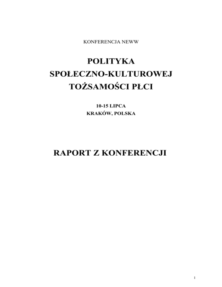 polityka społeczno kulturowej tożsamości płci raport z