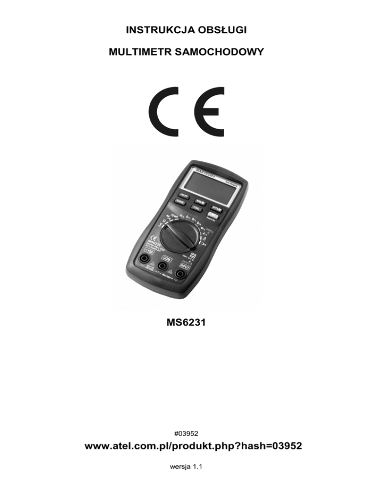 INSTRUKCJA OBSŁUGI MULTIMETR SAMOCHODOWY MS6231