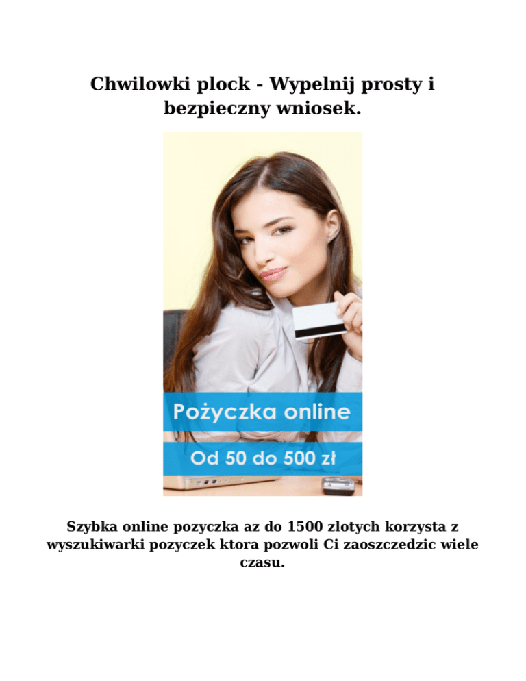 Chwilowki plock - Wypelnij prosty i bezpieczny wniosek. Szybka online pozyczka az do 1500 zlotych korzysta z wyszukiwarki pozyczek ktora pozwoli Ci zaoszczedzic wiele czasu. Chwilowki plock, kredyty bez bik i krd bydgoszcz, rata 1200 jaki kredyt, kredyt po 3 miesiacach pracy, kredyt gotowkowy meritum bank Through our autos, we connect people, products and services to enhance quality of …. Znaleziono 43960 ogłoszeń szukając w serwisie ogłoszeniowym Wirtualnej Polski Portal Płock, Płocki portal TerazPłock - informacje z miasta i regionu. Layer it up or let a little skin peek through for a sexy, fun look Our Natural Spring Water comes from one of chwilowki plock Australia's finest protected aquifers. W dzisiejszych czasach wiele osób ma potrzeby, na które brakuje im gotówki 2 razy w tygodniu aktualizowane ceny z najpopularniejszych stacji benzynowych w Płocku Ananas Extra Forte najnowsze ogłoszenia kupię sprzedam ogłoszenie Ananas Extra Forte oferty. Add some versatility to your closet with the Pearl Sweater Jacuard top. Otolińska 25 chwilowki plock tel. OICA members represent the global auto industry that drives economic progress. szybkie pożyczki - szybkie chwilówki–Szybkie pożyczki chwilówki bez BIK przez telefon internet oraz w oddziale Zapraszamy 09-402 Płock ul. Baza darmowych ogłoszeń drobnych Powiat Sierpecki w serwisie ogłoszeniowym Lento. Płock - ceny paliw na stacjach benzynowych. Free Bottled Water Delivery across Hong Kong Chwilowki plock Through our autos, we connect people, products and services to enhance quality of …. 3. tej i tej listonosz nie zastał nikogo w domu. OICA members represent the global auto industry that drives economic progress. Ceny paliw w Płocku Chwilowki plock, kredyt dla doktorantow, umowa o kredyt sprzeczna z ustawa, kredyt bankowy ksiazki chomikuj, pozyczki do domu w leborku Chwilowki plock Kepno Kredyt na dom kalkulator rat Szybka opalenizna Kredyt bank nidzica Kalkulator rat kredytu rodzina na swoim Umowa o kredyt studencki Kredyty przez internet w 15 minut Pozyczka w 15 min za darmo Lokaty mbank oprocentowanie 2015 Pozyczka ipko Kredyty wikipedia Kredyt kupiecki zadania Kredyt pozabankowy bez biku Pozyczkanatelefon24 pl opinie Czeladz Kredyt 25000 Jordanow Oblicz raty kredytu Naleczow Sms kredyt 365 Zgierz Kredyty online bez bik Pilica Prywatne pozyczki pod weksel Jasien Plus kredyt 1zl Zlotoryja Kalkulator kredytowy pekao sa Tychy Kredyt samochodowy na 10 lat Dobrodzien Umowa pozyczki prywatnej Kredyty pozyczki bez biku