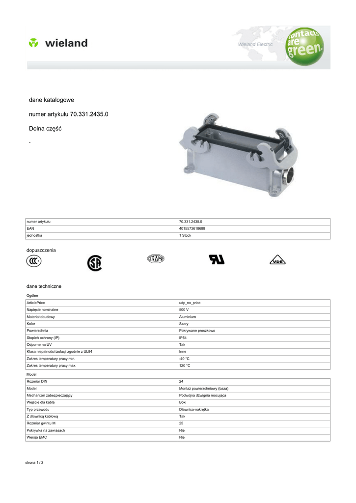 dane katalogowe numer artykułu 70.331.2435.0 Dolna