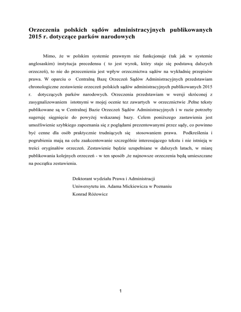 Orzeczenia polskich sądów administracyjnych publikowanych 2015