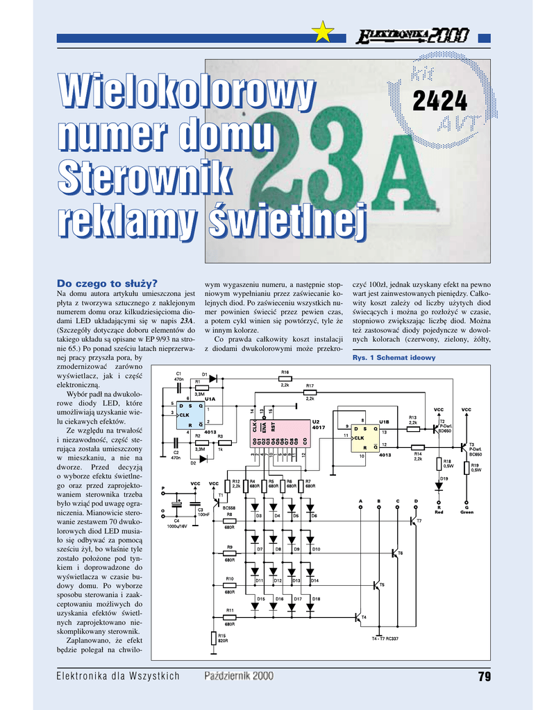 Wielokolorowy numer domu. Sterownik reklamy świetlnej