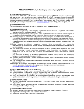 REGULAMIN PROMOCJI „20 zł zniżki przy zakupach powyżej 150 zł”