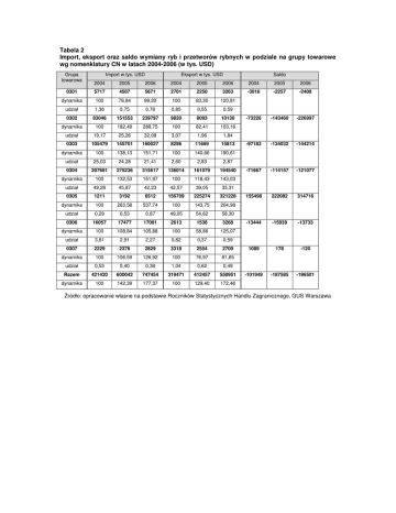 Tabela 2 Import, eksport oraz saldo wymiany ryb i przetworów