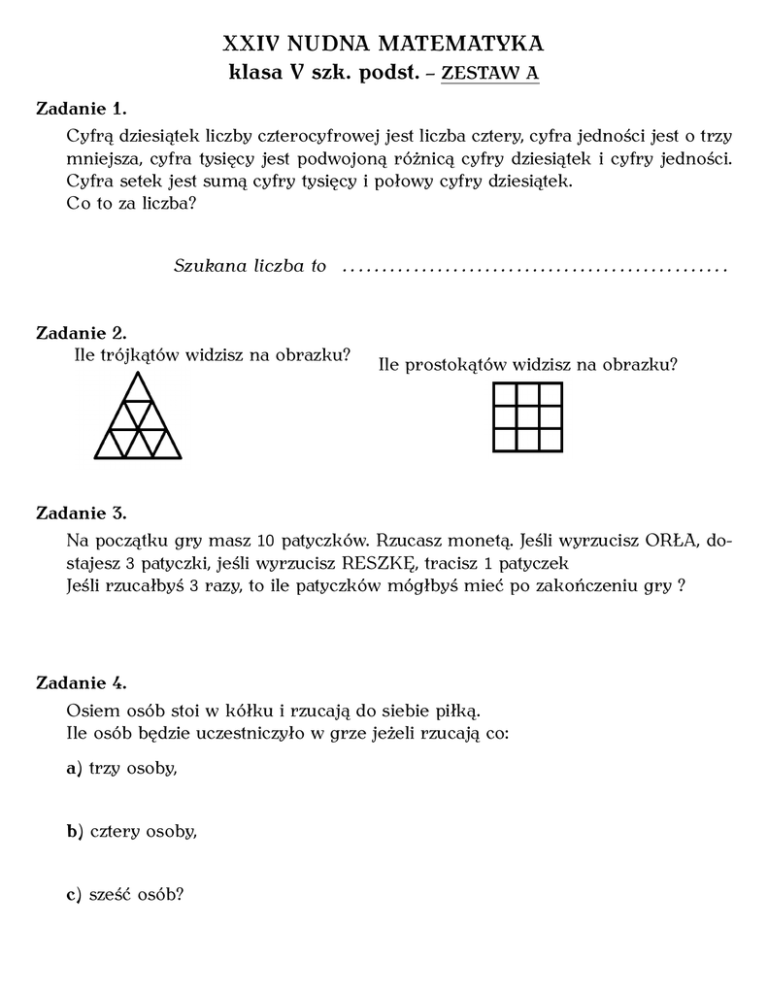 XXIV NUDNA MATEMATYKA klasa V szk. podst