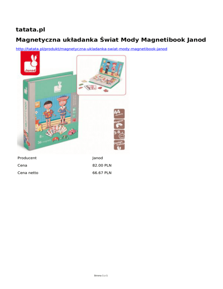 tatata.pl Magnetyczna układanka Świat Mody Magnetibook Janod http://tatata.pl/produkt/magnetyczna-ukladanka-swiat-mody-magnetibook-janod Producent Janod Cena 82.00 PLN Cena netto 66.67 PLN Strona 1 z 1