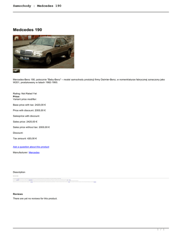 Samochody : Medcedes 190 Medcedes 190 Mercedes-Benz 190, potocznie "Baby-Benz" – model samochodu produkcji firmy Daimler-Benz, w nomenklaturze fabrycznej oznaczony jako W201, produkowany w latach 1982-1993. Rating: Not Rated Yet Price: Variant price modifier: Base price with tax: 2420,00 € Price with discount: 2000,00 € Salesprice with discount: Sales price: 2420,00 € Sales price without tax: 2000,00 € Discount: Tax amount: 420,00 € Ask a question about this product Manufacturer: Mercedes Description Historia i opis modelu By? to pierwszy Mercedes-Benz klasy ?redniej po d?ugiej przerwie, kiedy to firma produkowa?a jedynie wi?ksze modele wy?szych klas. W201 pojawi? si? na rynku 8 grudnia 1982, produkcj? zako?czono w lutym 1993 w Sindelfingen, a we wrze?niu 1993 w Bremie. Wyprodukowano 1 879 629 egzemplarzy[1]. Auto nap?dzane by?o silnikami diesla o pojemno?ci od 2,0 do 2,5 litra (72-126 KM w tym Turbo) oraz silnikami benzynowymi o pojemno?ci od 1,8 do 2,6 litra (90-160 KM). Powsta?y tak?e sportowe odmiany znane pod nazw? Cosworth 2.3-16v (185 KM), Evolution 2.5-16v (195-204 KM) i Evolution II 2.5-16v (235 KM). Model ten zosta? zast?piony w 1993 r. przez klas? C Odmiennie ni? w przypadku innych modeli, w których oznaczenie cyfrowe modelu oznacza?o pojemno?? skokow? silnika, tutaj "190" oznacza jedynie nazw? handlow? typoszeregu W201. Wed?ug ogólnie przyj?tych w firmie Daimler-Benz zasad np. model dwulitrowy z silnikiem wysokopr??nym powinien zwa? si? Mercedes-Benz 200D, to oznaczenie nosi?y jednak Mercedesy W123 i W124 z silnikiem o takiej pojemno?ci. Mercedesy 190 oprócz rodzimych tunerów by?y tak?e modyfikowane przez pochodz?c? z Wielkiej Brytanii firm? 190E Cosworth. Zmodyfikowane silniki bazowa?y na popularnym mercedesowskim motorze 2.3 E. Cosworth'y wytwarzane by?y w dwóch wersjach silnikowych: 2.3 16v (185 KM) i 2,5 16v (195-235 KM). Auto odznacza?o si? równie? delikatnym tuningiem optycznym. Mercedes-Benz 190 Cosworth jest bardzo rzadko spotykany, zw?aszcza na polskich drogach. Najwi?cej egzemplarzy tego modelu je?dzi po Wielkiej Brytanii. Reviews There are yet no reviews for this product. 1 / 1 Powered by TCPDF (www.tcpdf.org)
