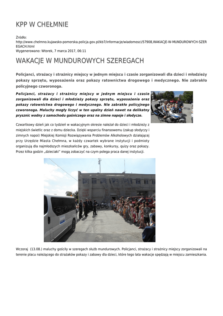 KPP W CHEŁMNIE WAKACJE W MUNDUROWYCH SZEREGACH