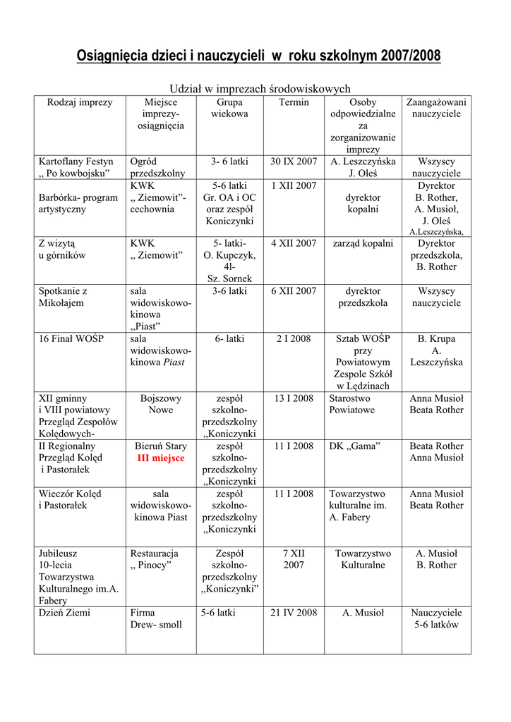 Osiągnięcia dzieci i nauczycieli w roku szkolnym 2007/2008