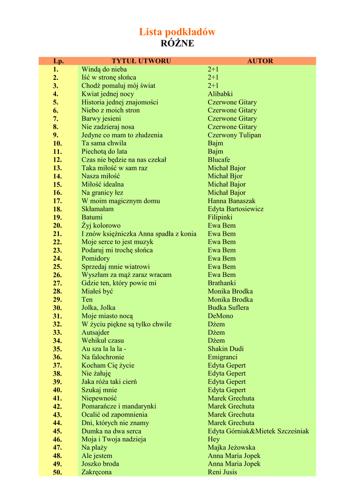 Lista podkładów RÓŻNE