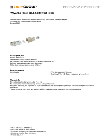 INFORMACJA O PRODUKCIE Wtyczka RJ45 CAT.5 Stewart SS37