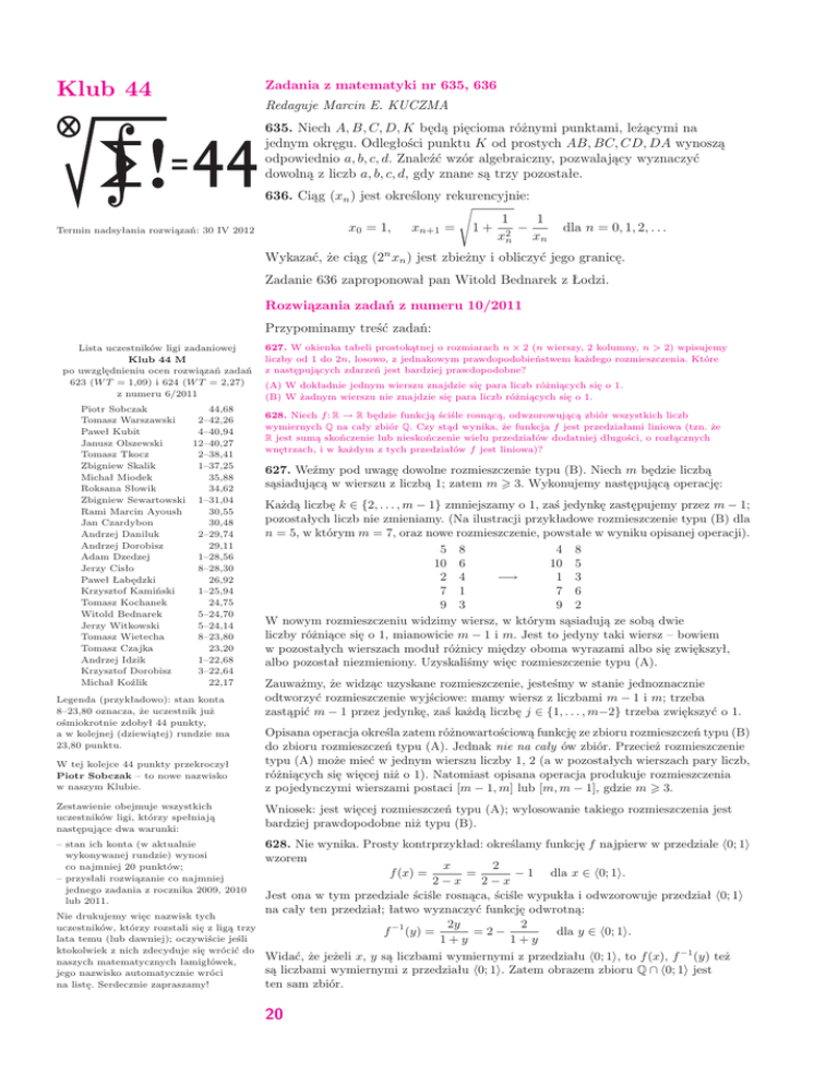 Termin nadsyłania rozwiązań: 30 IV 2012