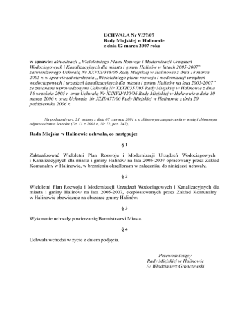 UCHWAŁA Nr V/37/07 Rady Miejskiej w Halinowie z dnia 02 marca
