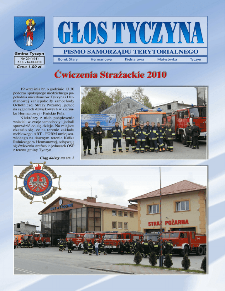 G£OS TYCZYNA 20/2010 1 2 G£OS TYCZYNA 20/2010 Rada uchwaliła 27 września br. odbyła się sesja Rady Miejskiej. Rani wysłuchali informacji z wykonania budżetu Gminy Tyczyn za I półrocze 2010 r. oraz podjęli uchwały w sprawach: > trybu prac nad projektem uchwały budżetowej. Podjęta uchwała związana jest ze zmianą ustawy o finansach publicznych, która zmienia wymogi jakie powinien spełniać projekt uchwały budżetowej. Zmiany dotyczą głównie m.in.: terminu uchwalenia uchwały budżetowej; szczegółowości uchwalanych dochodów i wydatków budżetowych; informacji o stanie mienia komunalnego, gdyż informacja ta jest przedkładana Radzie Miejskiej wraz ze sprawozdaniem z wykonania budżetu, a nie jak do tej pory wraz z projektem budżetu; prognozy kwoty długu przedstawianej wraz z projektem budżetu; > zaciągnięcia kredytu długoterminowego. W związku z przebudową drogi Kielnarowa - Tyczyn - Matysówka Łany, łączny koszt wynosi po przetargu 2.263.969,93 zł (w tym kwota 102.996,93 zł odcinek na terenie miasta Rzeszowa). W budżecie zabezpieczono środki własne w wysokości 1.063.200,00 zł. Ciąg dalszy na stronie 11 Aktualności Wyróżnienie dla „Głosu Tyczyna” 23 września br. w Wojewódzkim Domu Kultury w Rzeszowie odbyły się uroczystości: 10 - lecia Podkarpackiego Stowarzyszenia Samorządów Terytorialnych oraz 20 - lecia odrodzenia samorządu terytorialnego w Polsce. Podczas spotkania zostały wręczone statuetki Podkarpackiej Nagrody Samorządowej, nagrody PSST dla najzdolniejszej młodzieży Podkarpacia oraz wyróżnienia VII Podkarpackiego Forum Lokalnej Prasy Samorządowej. Gminę Tyczyn reprezentowała delegacja składająca się z członków Rady Miejskiej, Burmistrza Tyczyna oraz przedstawiciela redakcji „Głosu Tyczyna”. Nasze pismo samorządowe okazało się być najstarszą prasą samorządową na Podkarpaciu, stąd też otrzymaliśmy wyróżnienie, które z rąk wojewody i wicewojewody odebrał Burmistrz Tyczyna - Kazimierz Szczepański. (ag) OBWIESZCZENIE Burmistrza Tyczyna z dnia 28 września 2010 r. o okręgach wyborczych, ich granicach, numerach i liczbie radnych wybieranych w każdym okręgu wyborczym oraz o wyznaczonej siedzibie Miejskiej Komisji Wyborczej w wyborach do Rady Miejskiej w Tyczynie. Na podstawie art.94 ustawy z dnia 16 lipca 1998 r. – Ordynacja wyborcza do rad gmin, rad powiatów i sejmików województw (Dz.U. z 2003 r. Nr 159, poz. 1547 z późn. zm.), uchwały Nr XXXVII/278/02 Rady Miejskiej w Tyczynie z dnia 27 czerwca 2002 r. w sprawie podziału Gminy i Miasta Tyczyn na okręgi wyborcze (Dz. Urz. Woj. Podkarpackiego z 2002 r. Nr 42, poz. 856) i Uchwały Nr XLVII/336/10 Rady Miejskiej w Tyczynie z dnia 29 kwietnia 2010 r. w sprawie zmiany w podziale Gminy Tyczyn na okręgi wyborcze (Dz. Urz. Woj. Podkarpackiego z 2010 r. Nr 40, poz. 928) Podaję do publicznej wiadomości informację o okręgach wyborczych, ich granicach, numerach i liczbie radnych wybieranych w każdym okręgu wyborczym oraz o wyznaczonej siedzibie Miejskiej Komisji Wyborczej w Tyczynie w wyborach zarządzonych na dzień 21 listopada 2010 r. Nr okręgu wyborczego 1 2 3 4 5 Granice okręgu wyborczego Miasto Tyczyn Sołectwo Matysówka Sołectwo Kielnarowa Sołectwo Borek Stary Sołectwo Hermanowa Liczba radnych wybieranych w okręgu 5 2 2 2 4 Na siedzibę Miejskiej Komisji Wyborczej w Tyczynie wyznaczam pok. nr 31A, II piętro budynku Urzędu Miejskiego w Tyczynie, ul. Rynek 18. G£OS TYCZYNA 20/2010 3 „Śladami Fryderyka Chopina” Czytelnicy biblioteki oraz emerytowani nauczyciele to grupa osób, która wspólnie wybrała się na wycieczkę do Warszawy w dniach 10-11 września. Zbliżało się południe, gdy powitała nas stolica dosyć ładną pogodą. Pierwszym miejscem, w które udaliśmy się było Muzeum Bł. ks. Jerzego Popiełuszki. Znajduje się ono na terenie parafii pod wezwaniem św. Stanisława Kostki w podziemiach kościoła. To tu zgromadzono pamiątki związane z życiem, posługą i śmiercią księdza: kołyskę z czasów dzieciństwa, przedmioty codziennego użytku, wiele pamiątkowych fotografii czy sutannę, w której kapłan został zamordowany. Jedna z sal upamiętnia wydarzenie, które wstrząsnęło Warszawą i całą Polską - pogrzeb ks. Jerzego z 3 listopada 1984 roku. Uwieczniono go poprzez relacje uczestników, zdjęcia, dokumenty i pamiątki. O reakcjach Polaków świadczy liczba uczestników uroczystości (około miliona) oraz tysiące wieńców i wiązanek. Wszystkie szarfy i transparenty zostały przechowane, część z nich jest eksponowana. w Łazienkach wystawowe, w których prezentowane są materiały multimedialne i przedmioty związane z Fryderykiem Chopinem. Dodatkowo istnieje możliwość wysłuchania utworów kompozytora. Tak zakończyła się nasza wycieczka do Warszawy. Wsiadając do autobusu i tłocząc się w korkach stolicy, ponownie przyglądaliśmy się znanym nam już budynkom. Z pewnością w każdym z nas tkwi pewien niedosyt – nie da się zwiedzić tak ogromnego miasta w dwa dni, więc szkoda nam było odjeżdżać, ale to, co dobre szybko się kończy . Po drodze nie można było ominąć Żelazowej Woli, a w niej dworku Chopina, miejsca, z którym związane jest serce każdego Polaka. Przed grobem bł. ks. Popiełuszki Kolejnym etapem w naszej wędrówce było Muzeum Powstania Warszawskiego. Ten wybudowany w 2004 roku na pamiątkę 60. rocznicy wybuchu powstania budynek zachwycił nas bogactwem eksponatów, w znacznej mierze interaktywnych, dzięki którym te już dość odległe wydarzenia mogły stać się nam bliższymi. Sądzę, że bieganie na wzór powstańców po ciemnych kanałach, ogromny samolot zrekonstruowany w muzeum i mur z bijącym sercem powstania to elementy najmocniej zapadające w pamięć. Ponieważ dzień zbliżał się ku końcowi udaliśmy się jeszcze na krótki spacer do Łazienek. Tu w towarzystwie Fryderyka Chopina mogliśmy podziwiać resztki lata i zi