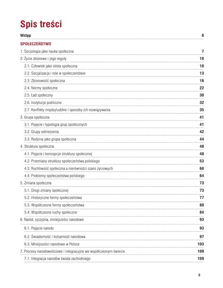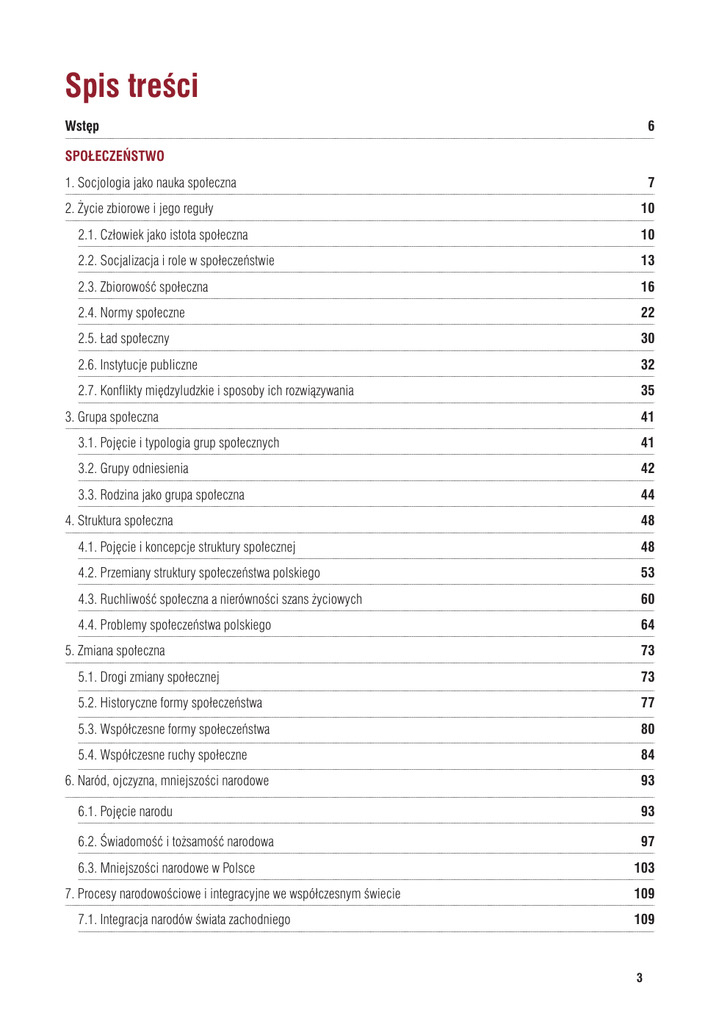 Spis treÊci Wst´p 6 SPOŁECZE¡STWO 7 1. Socjologia jako nauka spo∏eczna 2. ˚ycie zbiorowe i jego reguły 10 2.1. Człowiek jako istota społeczna 10 2.2. Socjalizacja i role w społeczeƒstwie 13 2.3. ZbiorowoÊç społeczna 16 2.4. Normy spo∏eczne 22 2.5. ¸ad spo∏eczny 30 2.6. Instytucje publiczne 32 2.7. Konflikty mi´dzyludzkie i sposoby ich rozwiàzywania 35 3. Grupa spo∏eczna 41 3.1. Poj´cie i typologia grup spo∏ecznych 41 3.2. Grupy odniesienia 42 3.3. Rodzina jako grupa spo∏eczna 44 4. Struktura spo∏eczna 48 4.1. Poj´cie i koncepcje struktury spo∏ecznej 48 4.2. Przemiany struktury spo∏eczeƒstwa polskiego 53 4.3. RuchliwoÊç spo∏eczna a nierównoÊci szans ˝yciowych 60 4.4. Problemy spo∏eczeƒstwa polskiego 64 5. Zmiana spo∏eczna 73 5.1. Drogi zmiany społecznej 73 5.2. Historyczne formy społeczeƒstwa 77 5.3. Współczesne formy społeczeƒstwa 80 5.4. Współczesne ruchy społeczne 84 6. Naród, ojczyzna, mniejszoÊci narodowe 93 6.1. Poj´cie narodu 93 6.2. ÂwiadomoÊç i to˝samoÊç narodowa 97 6.3. MniejszoÊci narodowe w Polsce 7. Procesy narodowoÊciowe i integracyjne we współczesnym Êwiecie 7.1. Integracja narodów Êwiata zachodniego 103 109 109 3 SPIS TREÂCI 7.2. MniejszoÊci narodowe i ochrona ich praw 113 7.3. Przyczyny i skutki konfliktów społecznych w paƒstwach Azji, Afryki i Ameryki Południowej 120 8. Kultura i pluralizm kulturowy 124 8.1. Poj´cie i typy kultury 124 8.2. Subkultury młodzie˝owe 136 9. Współczesne spory Êwiatopoglàdowe 140 10. Edukacja w XXI wieku 149 10.1. System oÊwiatowy w Polsce 149 10.2. Kształcenie ustawiczne 154 11. Obywatel i obywatelstwo 158 11.1. Poj´cie obywatelstwa i sposoby jego nabycia 158 11.2. Obowiàzki obywatela Rzeczypospolitej Polskiej 162 11.3. Obywatelskie nieposłuszeƒstwo 174 12. Społeczeƒstwo obywatelskie 178 12.1. Poj´cie i koncepcje społeczeƒstwa obywatelskiego 178 12.2. Formy aktywnoÊci społecznej 186 13. Opinia publiczna 194 14. Ârodki masowego przekazu 198 14.1. Poj´cie i funkcje współczesnych mediów 199 14.2. Podstawy prawne funkcjonowania mediów w Polsce 203 14.3. Rola internetu 207 Sprawdê si´ przed maturà! 210 POLITYKA 1. Poj´cie polityki 212 2. Demokracja 215 2.1. Poj´cie i geneza demokracji 215 2.2. Polskie tradycje demokratyczne 218 2.3. Fundamentalne zasady demokracji 224 2.4. Formy demokracji 229 4 SPIS TREÂCI 3. Polityka, ideologie, doktryny i programy polityczne 234 3.1. Kultura polityczna 234 3.2. Współczesne ideologie polityczne 238 3.3. Współczesne doktryny polityczne 248 3.4. Program polityczny 251 4. Systemy partyjne 256 4.1. Definicja i typologia partii politycznych 256 4.2. Współczesne systemy partyjne 260 4.3. Partie polityczne w Polsce 263 4.4. Współczesne systemy wyborcze 265 5. Instytucja paƒstwa 267 5.1. Poj´cie i geneza paƒstwa 267 5.2. Władza paƒstwowa 271 5.3. Funkcje paƒstwa 275 5.4. Historyczne i współczesne formy paƒstwa 280 5.5. Modele ustrojowe paƒstw demokratycznych 286 5.6. Zasady odpowiedzialnoÊci konstytucyjnej i politycznej 296 5.7. Relacje mi´dzy paƒstwem a KoÊciołem i zwiàzkami wyznaniowymi 299 6. Władza ustawodawcza w paƒstwie demokratycznym (legislatywa) 307 7. Władza wykonawcza w paƒstwie demokratycznym (egzekutywa) 314 8. Współczesna demokracja w Polsce i na Êwiecie – problemy i zagro˝enia 318 Sprawdê si´ przed maturà! 326 5