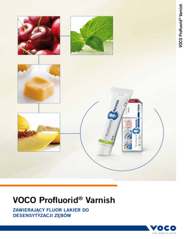 VOCO Profluorid® Varnish VOCO Profluorid® Varnish ZAWIERAJĄCY FLUOR LAKIER DO DESENSYTYZACJI ZĘBÓW VOCO Profluorid® Varnish WYSOCE SKUTECZNY [%] Nadwrażliwość zębów stanowi istotny problem dla bardzo wielu 100 osób. Wśród objawów dominuje zazwyczaj przejściowy ból 80 zęba, o którym pacjent nie wspomina nawet stomatologowi. 60 Najczęstszą przyczyną nadwrażliwości jest obnażenie kanalików 40 zębiny. Leczenie musi więc polegać na ich uszczelnieniu. 20 0 Wskazania Profluorid Varnish to zawierający fluor lakier do desensytyzacji zębów wskazany w leczeniu nadwrażliwości zębów. Umożliwia Zadowolenie pacjentów Wyniki badań stomatologów testujących preparat Nadwrażliwość Bez dolegliwości Istotna poprawa Bez zmian Nadwrażliwość zębów po pierwszej aplikacji Bardzo Zadowolony Niezadowolony zadowolony Wynik leczenia on skuteczne uszczelnienie obnażonych kanalików zębiny na powierzchni szyjek zębowych lub opracowanego ubytku. Składniki i skuteczność lakieru VOCO Profluorid® Varnish Poza wyjątkowo szybkim uszczelnianiem kanalików zębiny Bazę preparatu Profluorid Varnish stanowi kalafonia z dodat- Profluorid Varnish powoduje również wytrącanie fluorku wapnia kiem 5 % fluorku sodu (22.600 ppm fluoru). Jony fluorkowe na powierzchni zęba. Złogi te stanowią ochronę przed działa- reagują z jonami wapnia zgromadzonymi w kanalikach zębi- niem kwasów, ułatwiają remineralizację, a w dalszej perspekty- ny, co powoduje wytrącanie się złogów fluorku wapnia, który wie przyczyniają się do tworzenia fluoroapatytów. skutecznie uszczelnia kanaliki. Badania prowadzone przez Ksylitol, substancja o udowodnionym działaniu kariostatycz- stomatologów wykazały, że już jedna aplikacja lakieru nym, poprawia właściwości smakowe preparatu. Profluorid Varnish pozwoliła na eliminację dolegliwości bólowych u 85 % pacjentów. Zębina Kan owy bin ę al z Źródło: Dr. O. Haß VOCO Profluorid® Varnish VOCO Profluorid® Varnish PROSTE I ESTETYCZNE Prostota aplikacji Estetyka i smak Dzięki matrycy zawierającej kalafonię Profluorid Varnish bardzo Profluorid Varnish jest lakierem w naturalnym odcieniu zęba, dobrze przylega nawet do wilgotnych powierzchni, nie ma więc który nie wpływa negatywnie na estetykę uzębienia. Poza potrzeby suszenia powierzchni zęba przed jego aplikacją. Po- ksylitolem w skład preparatu wchodzi również substancja o prawia to istotnie współpracę z pacjentami, którzy mogą mieć smaku melona poprawiająca smak i zapach lakieru. Zwiększa problem z wykonywaniem zaleceń (np. dzieci). to akceptację preparatu, zwłaszcza przez dzieci. Stosowanie lakieru [%] 100 80 60 40 20 0 Niewielka Akceptowalna Zbyt duża Czasochłonność Prosta łatwa Akceptowalna Zbyt długa Metoda aplikacji Dość trudna Svært Aplikacja Dobre łatwe Złe Nieodpowiednie Dawkowanie Wyniki badań stomatologów testujących preparat Opinia stomatologów Wszyscy stomatolodzy stosujący Profluorid Varnish ocenili jego również do gustu pacjentom. Prawie wszyscy z ankietowanych właściwości estetyczne oraz aplikację jako dobre. Większość pacjentów zgłaszali istotną poprawę albo całkowite ustąpienie stomatologów donosiła nawet o wyraźnej różnicy między objawów nadwrażliwości. Profluorid Varnish a preparatami konkurencyjnych firm na Profluorid Varnish to coś więcej niż tylko kwestia dobrego korzyść lakieru firmy Voco. Profluorid Varnish przypadł smaku! Prosta i estetyczna desensytyzacja zębów z VOCO Profluorid® Varnish Zalety opakowań typu SingleDose Profluorid Varnish w opakowaniach typu SingleDose dostępny jest w blistrach zawierających jednocześnie pędzelek do aplikacji i lakier. Pozwala to na aplikację produktu w idealnie higienicznych warunkach. Aplikacja z kartuszy Zalety kartuszy Sprawdzone i wypróbowane kartusze pozwalają nanosić materiał z precyzyjną dokładnością oraz przeprowadzić fluoryzację całego łuku zębowego za jednym podejściem. VOCO Profluorid® Varnish VOCO Profluorid® Varnish TWÓJ WYBÓR Wskazania Zalety Leczenia nadwrażliwości zębów • Łatwość aplikacji na wilgotnych powierzchniach Zamykania i uszczelniania kanalików zębinowych podczas • Estetyczny, biało-przezierny kolor naturalnego zęba preparacji ubytku oraz w przypadkach nadwrażliwości • Szybka desensytyzacja i uwalnianie fluorków odsłoniętych powierzchni korzenia zęba (5 % NaF ≙ 22.600 ppm fluoru) • Dostępny w czterech smakach: melonowym, miętowym, wiśniowym i karmelowym Zalety SingleDose • Produkt i aplikator w higienicznym, jednorazowym opakowaniu • Bez dodatkowego oprzyrządowania • Nie wycieka Zalety kartuszy • Możliwość wielokrotnego użycia wraz z jednorazową kaniulą • Idealnie precyzyjna aplikacja • Wyjątkowa łatwość aplikacji w przestrzeniach międzyzębowych • Fluoryzacja całego łuku zębowego za jednym podejściem Formy sprzedaży Smak SingleDose 48 × 0,40 ml SingleDose 50 × 0,25 ml SingleDose 50 × 0,40 ml SingleDose 200 × 0,40 ml Tuba 10 ml Tuba 50 ml Pojemnik 5 × 1,70 ml Melonowy – REF 1268 REF 1269 REF 1271 REF 1267 REF 1272 REF 2235 Karmelowy – – REF 2226 REF 2229 REF 2232 – – Wiśniowy – – REF 2227 REF 2230 REF 2233 – – Miętowy – – REF 2228 REF 2231 REF 2234 – – Mixed REF 2225 – – – – – – REF 2167 Końcówki aplikacyjne typ 43, 100 szt. VOCO GmbH Anton-Flettner-Straße 1-3 27472 Cuxhaven Niemcy Tel.: +49 (0) 4721-719-0 Fax: +49 (0) 4721-719-140 [email protected] www.voco.com/pl VC 84 001268 PL 0216 V Do nabycia w: