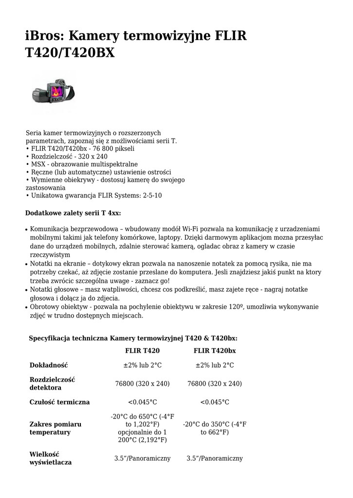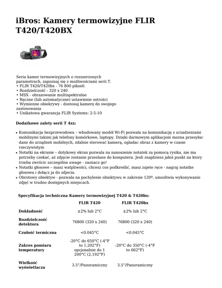 iBros: Kamery termowizyjne FLIR T420/T420BX