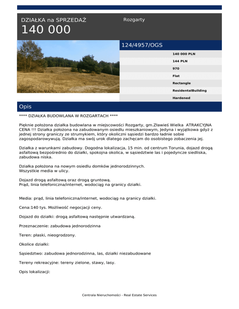 DZIAŁKA na SPRZEDAŻ 124/4957/OGS Opis