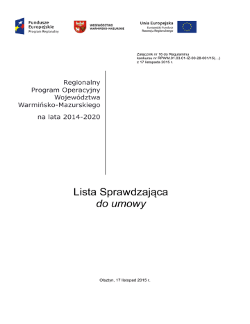 Załącznik nr 16 do Regulaminu Lista sprawdzająca do umowy