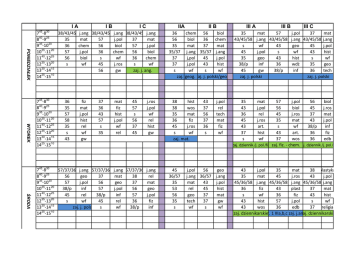 IA 45 IB IC IIA 30 PONIEDZIAŁEK 7 -8 38/43/45 j.ang 38/43/45 j.ang 38/43/45 j.ang 840-925 35 mat 57 j.pol 37 mat 35 20 9 -10 36 chem 56 biol 57 j.pol 35 20 10 -11 57 j.pol 36 chem 56 biol 1140-1225 56 biol s wf 36 chem 1235-1320 s wf 45 j.ros s wf 30 15 13 -14 56 gw zaj. j. ang. 1425-1510 WTOREK 745-830 840-925 935-1020 1035-1120 1140-1225 1235-1320 1330-1415 1425-1510 36 35 57 58 35 s 43 fiz mat j.pol hist rel wf gw 37 36 43 57 s 35 mat fiz hist j.pol wf rel 45 57 s 56 37 45 j.ros j.pol wf rel hist gw ŚRODA 745-830 57/37/36 j.ang 57/37/36 j.ang 57/37/36 j.ang 40 25 8 -9 56 geo 37 mat 38 rel 935-1020 57 j.pol 56 geo 37 mat 1035-1120 38/p inf 57 j.pol 56 geo 40 25 11 -12 45 rel 38/p inf 57 j.pol 1235-1320 s wf 45 rel 36 fiz 30 15 13 -14 zaj. j. polski s wf 38/p inf 1425-1510 36 56 35 35/37 37 37 s zaj. II B chem 56 biol biol 36 chem mat 37 mat j.ang 35/37 j.ang j,pol 45 j.pol j.pol 43 hist wf s wf geog. zaj. j. polski/geog 38 hist 38 wos 35 mat 36 fiz 45 j.ros s wf zaj. mat. 45 36/57 35 53 56 35 s 43 37 56 37 36 s III A III B III C 35 mat 57 j.pol 37 mat 43/45/58 j.ang 43/45/58 j.ang 43/45/58 j.ang s wf 43 geo 45 j.pol 45 j.pol s wf 43 hist 35 geo 43 hist s wf 38/p inf 36 wdż 35 geo 45 gw 38/p inf 36 tech zaj. j. polski zaj. j. polski j.pol rel tech mat fiz wf 35 43 36 45 43 37 s mat j.pol rel j.ros art. hist wf 57 j.pol 56 biol 56 biol 45 j.ros 45 j.ros 37 mat 35 mat 43 j.pol s wf 38/p inf 43 art. 36 fiz 37 wos 36 edb zaj. dziennik./j. pol./fiz zaj. fiz. - chem.zaj. dziennik./j. pol./fiz j.pol 56 geo j.ang 36/57 j.ang mat 43 j.pol rel 45 hist geo 37 mat tech 37 gw wf s wf 43 j.pol 35 mat 38 plastyka 35 mat 45 j.ros 43 j.pol 45/36/58 j.ang 45/36/58 j.ang 45/36/58 j.ang 36 fiz 43 plast 37 mat s wf 36 fiz 43 hist 43 hist 57 j.pol s wf 43 wos 36 edb 37 religia zaj. dziennikarskie gr. 1 IIIa,b,c zaj. j.ang. zaj. dziennikarskie DA CZWARTEK 745-830 840-925 935-1020 1035-1120 1140-1225 1235-1320 1330-1415 1425-1510 45 56 57 36 35 43 s j.ros hist j.pol chem mat muz w-f 56 37 43 57 36 s hist mat muz j.pol chem w-f 37 57 s 37 43 36 mat j.pol wf hist muz chem PIĄTEK 745-830 35 mat 57 j.pol 37 mat 840-925 43/56/38 j.ang 43/56/38 j.ang 43/56/38 j.ang 935-1020 57 j.pol 37 mat 36 biol 35 20 10 -11 56 geo 36 biol 57 j.pol 1140-1225 36 biol 56 geo s wf 35 20 12 -13 56 geo 30 15 13 -14 1425-1510 43 43 35 45 57 35 s 36 35 43/56 43 35 j. pol art. mat j.ros rel gw wf 38 35 37 56 45 37 s art. j. polski mat rel. j.ros wos wf fiz 45 j.ros mat 36 fiz j.ang 43/56 j.ang hist 37 mat j.pol 45 j.pol 37 zaj. mat zaj. j. ang. 36 38 56 43 s 45 38/43/56 45 35 45 43 36 36 chem rel j.pol plast wf EDB 57 36 45 35 37 s 57 zaj. biologia j.pol chem rel mat hist wf rel 35 45 36 s 56 57 43 j. polski j.ros chem wf gw rel wdż j.ang 38/43/56 j.ang 38/43/56 j.ang j.ros 57 j.pol 37 wos mat s wf 45 j.pol j.pol 35 mat s wf tech 57 g wych 37 mat biol 43 zaj. art.. 45 tech wdż zaj. j. pol./ mat./biol. zaj. mat./biol plastyka religia j. polski zaj. art..