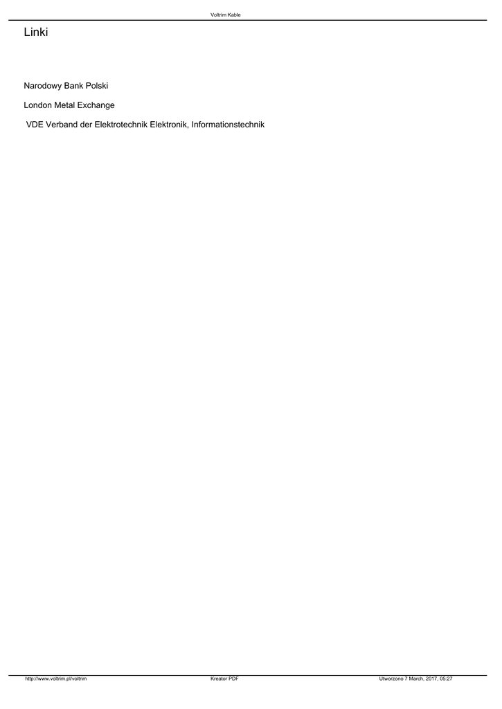 Voltrim Kable Linki Narodowy Bank Polski London Metal Exchange VDE Verband der Elektrotechnik Elektronik, Informationstechnik http://www.voltrim.pl/voltrim Kreator PDF Utworzono 7 March, 2017, 05:27