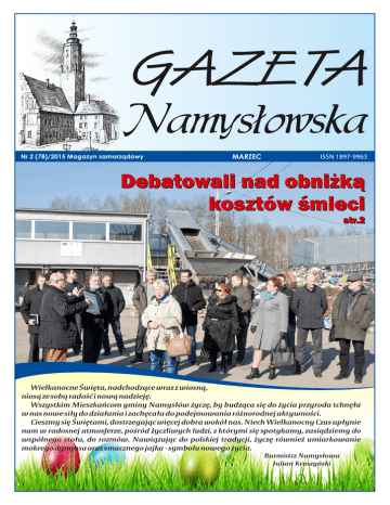 Namysłowska Nr 2 (78)/2015 Magazyn samorządowy MARZEC Debatowali nad obniżką kosztów śmieci str.2 Wielkanocne Święta, nadchodzące wraz z wiosną, niosą ze sobą radość i nową nadzieję. Wszystkim Mieszkańcom gminy Namysłów życzę, by budząca się do życia przyroda tchnęła w nas nowe siły do działania i zachęcała do podejmowania różnorodnej aktywności. Cieszmy się Świętami, dostrzegając więcej dobra wokół nas. Niech Wielkanocny Czas upłynie nam w radosnej atmosferze, pośród życzliwych ludzi, z którymi się spotykamy, zasiądziemy do wspólnego stołu, do rozmów. Nawiązując do polskiej tradycji, życzę również umiarkowanie mokrego dyngusa oraz smacznego jajka - symbolu nowego życia. Burmistrz Namysłowa Julian Kruszyński 2 MARZEC 2015 DEBATOWALI NAD OBNIŻKĄ KOSZTÓW ŚMIECI Na czym polega odbiór i zagospodarowanie odpadów w gminieNamysłów?Cowtejdziedziniemożemyulepszyćiw końcu,czymy-mieszkańcygminy-możemymniejpłacićza wywózśmieci.Napytaniatepróbowaliodpowiedziećradnii burmistrzNamysłowa. Prawie dwa lata temu niemal cała odpowiedzialnoś ć za odpady komunalne spadła na samorządowcó w z gmin. W zamian za obowiązkową opłatę od mieszkań có w gmina od tamtejporymaobowiązekzorganizować odbió riprzetwarzanie ś mieci.Noweuregulowaniaprawnewzakresiegospodarowania odpadami wprowadziły pojęcie Regionalnej Instalacji PrzetwarzaniaOdpadó wKomunalnych(RIPOK).Jesttozakład z a g o s p o d a r o w a n i a o d p a d ó w o m o c y p r z e r o b o w e j wystarczającej do przyjmowania i przetwarzania odpadó w z obszaruzamieszkałegoprzezconajmniej120tys.mieszkań có w, spełniający wymagania najlepszej dostępnej techniki i technologii. Funkcję RIPOK dla Namysłowa na mocy uchwały sejmiku wojewó dztwa opolskiego pełni składowisko w Gotartowie, niedaleko Kluczborka. To oznacza, ż e odpady komunalnezNamysłowaprzemierzajątrasę40kilometró w-Z naszego punktu widzenia jest to mało ekonomiczne - mó wi Roman Kania, naczelnik wydziału gospodarki komunalnej i inwestycji - Z Gotartowa nasze samochody wracają bowiem puste.Sękwtym,bytenpustyprzebiegzastąpić rozwiązaniem bardziejdlanasopłacalnym. Dlaczegojesttotakważ nedlagminyNamysłó w?-Obecnie około 80 procent odpadó w komunalnych wozimy właś nie do Gotartowa, choć na swoim terenie mamy składowisko w Ziemiełowicach,któ regoniewykorzystujemywpełni-tłumaczy Roman Kania. Wszystko przez uregulowania prawne, któ re nakazująnamkorzystać zinstalacjiwGotartowie.Ziemiełowice pełniąwtymsystemiefunkcjęskładowiskarezerwowego. Nadpomysłamiusprawnieniagospodarowaniaodpadamiw gminiedebatowalinamysłowscyradniwspó lniezburmistrzem oraz przedstawicielami zarządcó w nieruchomoś ci i spó łki EKOWOD. Debata miała dwojaki charakter. Pierwsza jej częś ć poś więcona była wizytom na składowisku w Ziemiełowicach oraz w Punkcie Selektywnej Zbió rki Odpadó w Komunalnych przy ulicy Grunwaldzkiej. Spotkanie drugie odbyło się w u r z ę d z i e m i e j s k i m i p o ś w i ę c o n e by ł o dys ku s j i n a d usprawnieniemgospodarowaniaodpadamiorazposzukiwaniu moż liwoś cizmniejszeniakosztó wwtymzakresie. Sprawy, któ re zostały poruszone na spotkaniu zostaną przekazane Komisji Porządku Publicznego i Ochrony Srodowiska,wcelupracynadwyż ejwymienionymiwnioskamia efektem inalnymbędzieprzygotowaneprojektuuchwał,któ re zostanąpoddanepodobradyRadyMiejskiejwNamysłowie. SławomirStramski MIESZKAŃCU, ROBIĄC WIOSENNE PORZĄDKI PAMIĘTAJ O PunkcieSelektywnejZbiórkiOdpadówKomunalnych przyul.GrunwaldzkiejwNamysłowie Godzinyotwarcia:odponiedziałkudopiątku wgodz.10.00-17.00 wsobotywgodz.10.00-13.00 Mieszkańcy Gminy Namysłów mogą bezpłatne przekazać nw. odpady: papier, metale, tworzywa sztuczne, szkło,zuż ytebaterieiakumulatory,zuż ytysprzętelektrycznyi elektroniczny, meble i inne odpady wielkogabarytowe, zuż yte opony samochodowe (o ś rednicy nieprzekraczającej 56 cm) odpady zielone, glebę/ziemię w tym kamienie, zuż yte oleje hydrauliczne, przekładniowe, smarowe, odzież i tekstylia, przeterminowane leki, lampy luorescencyjne, magnetyczne i optyczne noś niki informacji, odpadowy toner drukarski, drewnoorazgruzbudowlany. W punkcie nie przyjmuje się odpadów takich, jak: materiałyzawierająceazbest,papę,szybysamochodowe,szkło zbrojoneihartowane,częś cisamochodowe(zderzaki,re lektory itp.), odpady nieoznaczone, bez moż liwoś ci wiarygodnej identy ikacji, odpady w opakowaniach cieknących i uszkodzonych, zmieszane (niesegregowane) odpady komunalne. DostarczanedoPunktu odpadymusząbyć posegregowane orazzabezpieczonewsposó buniemoż liwiającywysypaniesię odpadó wwtrakcierozładunku.Maksymalnailoś ć,jednorazowo przywiezionychodpadó wkomunalnychniemoż eprzekroczyć 2m³. Odpady przyjmowane są nieodpłatnie wyłącznie od właś cicielinieruchomoś cip o ł o ż o nyc h n a t e re n i e G m i ny Namysłó w, na któ rych zamieszkują mieszkań cy, po okazaniu d o k u m e n t u p o t w i e r d z a j ą c e g o m i e j s c e zamieszkania/zameldowanianaterenieGminyNamysłó w. OdpadydostarczonedoPunktuprzezpodmiotyprowadzące działalnoś ć gospodarczą, przyjmowane są odpłatnie według cennika ustalonego przez Zakład Wodociągó w i Usług KomunalnychEKOWODSp.zo.o. AleksanderPolan Drodzy Sołtysi i członkowie Rad Sołeckich z gminy Namysłów, z okazji przypadającego w marcu Dnia Sołtysa, składam Państwu najserdeczniejsze życzenia zdrowia, radości oraz wszelkiej pomyślności, dziękując tym samym za trud i wysiłek włożony w pracę Burmistrz Namysłowa na rzecz swoich sołectw. Julian Kruszyński MARZEC 2015 GMINA PRZYGOTOWANA DO POZYSKIWANIA FUNDUSZY Noworozpoczynającasięperspektywa inansowa20142020 niesie za sobą szereg możliwości inansowania różnych projektów. W ramach Regionalnego Programu OperacyjnegoWojewództwaOpolskiegonalata2014-2020 pierwszychnaborówwniosków,zgodniezprzyjętymprzez Zarząd 