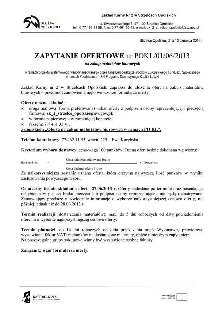 ZAPYTANIE OFERTOWE nr POKL/01/06/2013