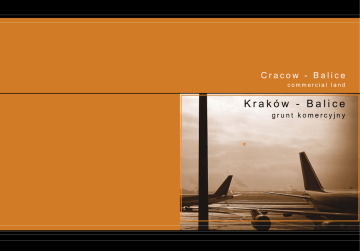 C r a c o w - B a l i c e c o m m e r c i a l l a n d K r a k ó w - B a l i c e g r u n t k o m e r c y j n y Małopolska należy do najbardziej atrakcyjnych turystycznie regionów Polski, dzięki czemu odwiedzana jest przez wielu turystów z kraju i ze świata (w roku 2004 region ten odwiedziło półtora miliona turystów z zagranicy i 6 milionów z kraju). Przyciąga turystów licznymi zabytkami, różnorodną, bogatą kulturą oraz malowniczą przyrodą. Małopolska posiada wiele unikalnych walorów kulturowych, z których kilka znalazło się na liście Światowego Dziedzictwa Kultury UNESCO. Do najczęściej odwiedzanych należą między innymi: Stare Miasto Kraków, Kopalnia Soli w Wieliczce, obóz Auschwitz- Birkenau i Zespół Klasztorny oo. Bernardynów w Kalwarii Zebrzydowskiej. Atrakcyjność województwa podnoszą cenne, wyjątkowe w skali kraju walory krajoznawcze, do których zaliczyć możemy: Tatry, przełom Dunajca w Pieninach, malownicze grzbiety Beskidów i Gorców, formy krasowe Wyżyny Krakowsko-Częstochowskiej, parki narodowe, rezerwaty przyrody i wiele innych. Kraków jest miastem przejazdowym dla turystów z całego świata zainteresowanych Zakopanem – miastem, które przyciąga nie tylko amatorów sportów zimowych, ale i wszystkich spragnionych informacji o zachowanej do dziś staropolskiej kulturze i tradycji podhalańskiej. Do Małopolski dotrzeć można samolotem, koleją, autokarem lub samochodem. Kraków posiada regularne połączenia kolejowe i autokarowe ze wszystkimi większymi miastami w Polsce i z wieloma miastami w Europie Środkowej. Autobusy docierają do większości miejscowości w Małopolsce. W odległości zaledwie 11 kilometrów od centrum Krakowa znajduje się Międzynarodowy Port Lotniczy im. Jana Pawła II Kraków – Balice i choć miasto jest punktem odniesienia dla obecnych inwestycji komunikacyjnych, to stąd liczone są odległości i tutaj łączą się drogi z wszystkich kierunków. Głównym celem projektów komunikacyjnych miasta jest zagwarantowanie nowoczesnego i wygodnego systemu poruszania się wewnątrz aglomeracji oraz stworzenie 3 ha Małopolska is one of the most touristically attrac- tive regions of Poland, which is the reason why it is visited by many tourists from Poland and other countries (in 2004 it was visited by 6 mln people from Poland and 1,5 mln from abroad), drawn by its numerous monuments, cultural diversity and picturesque nature. Małopolska possesses many unique cultural advantages, several of which are on the UNESCO World Heritage List. Among the most frequently visited there are: the Old Town in Cracow, Wieliczka Salt Mine, Auschwitz-Birkenau concentration camp and Bernardine monastery in Kalwaria Zebrzydowska. The region’s charm mani- fests itself in the abundance of numerous attractions which include the breathtaking landscape of Tatra mountains, Dunajec River Gorge in Pieniny moun- tains, the picturesque hogbacks of Beskidy and Gorce mountains, the karstic topography of Wyżyna Krakowsko-Częstochowska, national parks and na- ture reserves and many others. Cracow is a stop for tourists from all over the world on their way to Zakopane – the town which is irresistible not only to winter sports amateurs, but to all those who want to learn about still existing old Polish culture and tradi- tion of Podhale. You can reach Małopolska by plain, train, bus or car. Cracow has regular railway and bus connec- tions to larger cities in Poland and to many cities in the Central Europe. You can also travel around Małopolska simply using the local bus service. The John-Paul II International Airport Kraków-Bal- ice Ltd. is located in the distance of merely 11 km from the Cracow city center. Virtually all roads lead there. The main intent of Cracow’s communica- tion plans is to guarantee a modern and conven- ient way of travelling within the city borders avoid- możliwości płynnego omijania zatłoczonych ulic w transporcie tranzytowym, a jednocześnie podejmowane są starania zmierzające do ułatwienia dotarcia do Krakowa turystom z całego świata. To zaś wiąże się z rozwojem komunikacji lotniczej i kolejowej. W trakcie realizacji jest już Zintegrowany System Transportu Zbiorowego, wykorzystujący istniejącą na terenie miasta sieć torów kolejowych i tramwajowych w celu doprowadzenia tras dojazdowych m.in. do Portu Lotniczego w Krakowie – Balicach. Realną wizją Międzynarodowego Portu Lotniczego im. Jana Pawła II Kraków – Balice Sp. z o.o. jest spełnienie najwyższych standardów sieci lotnisk europejskich oraz osiągnięcie pozycji lidera wśród europejskich portów regionalnych, dbającego o wysoki poziom obsługi ku satysfakcji pasażerów i dążącego do sukcesu ekonomicznego. Biorąc pod uwagę szybki rozwój tanich linii lotniczych, a tym samym zwiększającą się liczbę podróżujących, przedstawiamy Państwu ofertę nieruchomości w postaci ponad 3-hektarowej działki usytuowanej w okolicy lotniska i autostrady. Jej wielką zaletą jest fakt, iż w nowym planie zagospodarowania przestrzennego działka ta jest w całości terenem targowym z funkcją logistyczną i komercyjną, przez co jest ona idealna pod inwestycje typu hotel, biuro (np. obsługujące lotnisko), centrum konferencyjne, parkingi, magazyny lub inne – w zależności od planów i wyobraźni inwestora. Warto wspomnieć, że w okolicach przedstawianej nieruchomości znajduje się Catering LOT oraz jednostka wojskowa, co wróży, iż w przyszłości tereny, które Państwu oferujemy, będą NAJBLIŻSZYM sąsiedztwem rozwijającego się lotniska. ing crowded streets used as transit routes. In the meantime, efforts are made to make Cracow easily accessible to all tourists from around the world, which has been adjusted to the general air and railway communication development. There is the Integrated System of Collective Transport being im- plemented at the moment, which is meant to use the existing railway and tram 