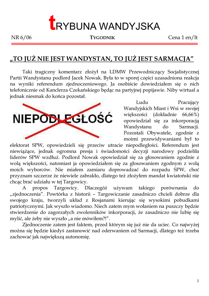 „TO JUś NIE JEST WANDYSTAN, TO JUś JEST SARMACJA”