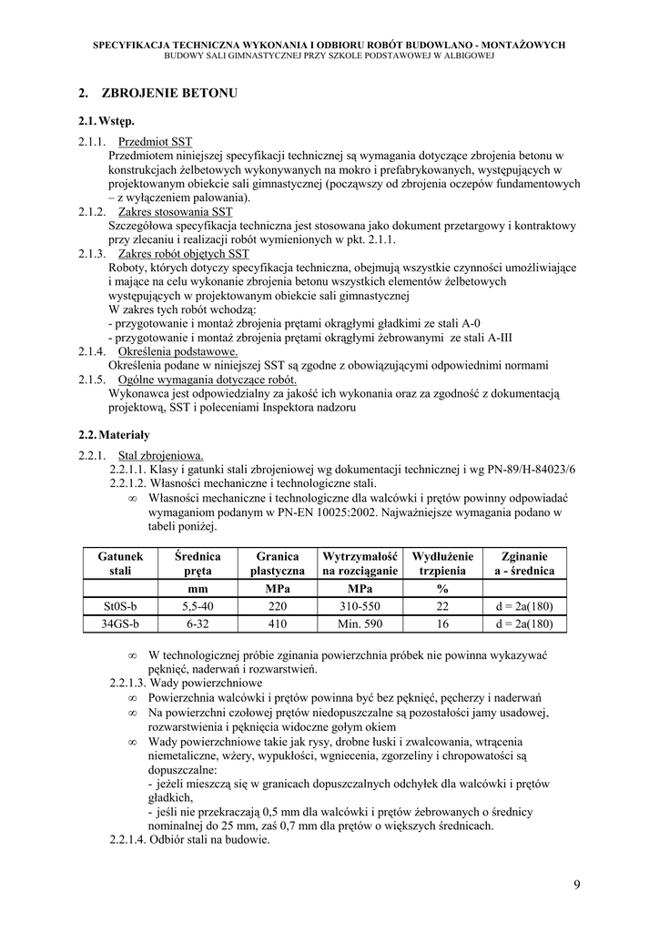 Specyf.techn. zbrojenie - b i p . g m i n a l a n c u t . p