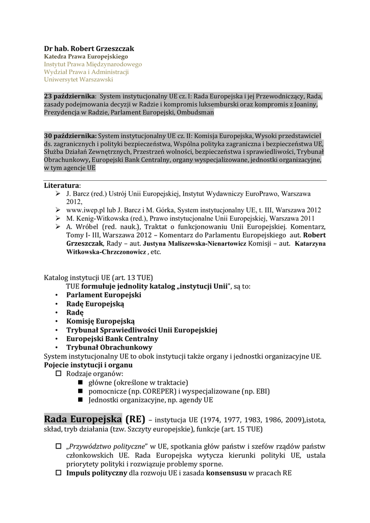 Katalog instytucji UE - Prof. UW dr hab. Robert Grzeszczak