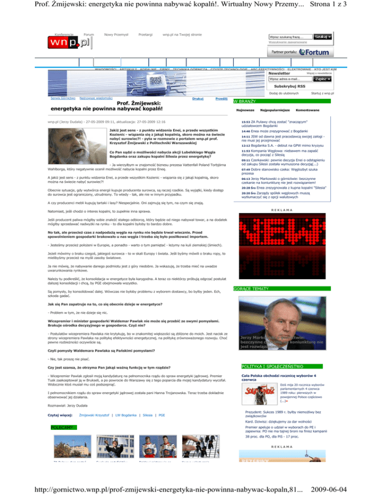 Strona 1 z 3 Prof. śmijewski: energetyka nie powinna nabywać