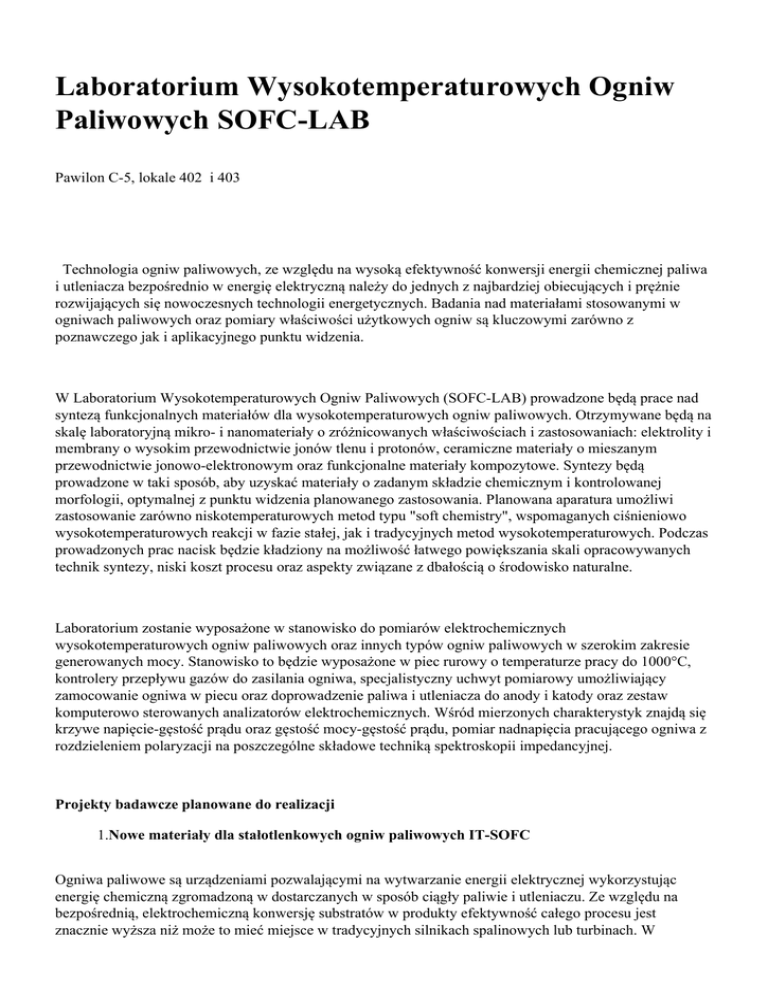 Laboratorium Wysokotemperaturowych Ogniw Paliwowych